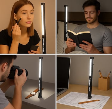 رغم أن الرياضيين يعشقونه، إلا أن المصباح مثالي أيضًا للمكياج، تصوير المنتجات، ورشات العمل، أو حتى القراءة. إضاءة دقيقة، ناعمة، وقابلة للتنقل بسهولة